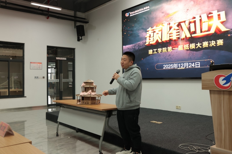 12月上旬启动的纸模建筑大赛获全院各班积极响应,各班班委牵头组队,经设计、创作、打磨提交作品,评审组按主题契合度、创意性等标准筛选晋级决赛。12月24日的决赛中,各代表队展示讲解作品,涵盖创意、制作、结构、受力等核心内容,作品类型多样、精细稳固且创意独特,彰显建工学子专业素养。评委结合作品质量、现场表现及承重测试评分,岳翎老师点评肯定付出与亮点,提出改进建议。获奖班级表态将珍惜荣誉,发扬工匠精神深耕专业领域。